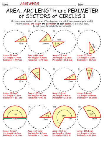 Arc length and sector area worksheet (with answer key) Use this math worksheet you learn about equating the sector area and arc length thoroughly. A reflection section is included at the end of this worksheet to assist the student think about their thinking (metacognition) and analyse how they performed in the session. Finally, it challenges the student to devise their problems and compare them ...